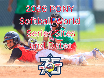 PONY Baseball and Softball International Board of Directors announced the sites and dates of its Softball World Series events in 2026.